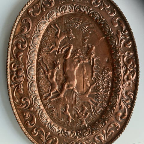 Platte, Kobber, Denne kobberplatte med jagtmotiv er mere end 100 år gl.