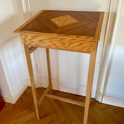 Bordet på billedet er lavet til et lille hjemmekontor, hvor det lige kunne stå under en trappe.