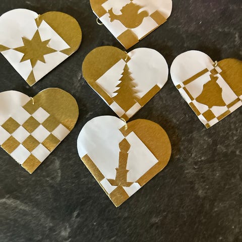 Julehjerter flettet som haner, Meget fine haner i meget flot glitterpapir