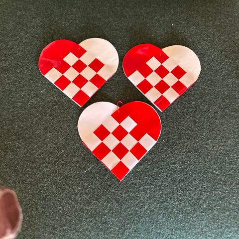 Julehjerter med englehank, Fine hjerter flettet i meget flot glitterpapir