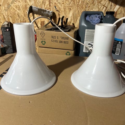 Pendlen er designet til at give punktbelysning. Vi har anvendt den som lyskilde over et bord, hvor den hvide farve giver et varmt, behageligt lys.