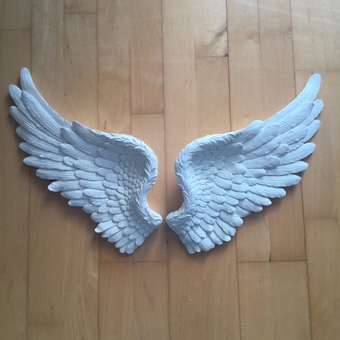 Englevinger/Fuglevinger, Lisbeth Dahl Brugskunst, Store og dramatiske englevinger i gips. Kan bruges året rundt og også til jul.