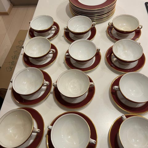 Porcelæn, Skåle med guldkant, Simpsons Pottery Solian Ware, 4 stk. flotte skåle med Hubertusjagt: