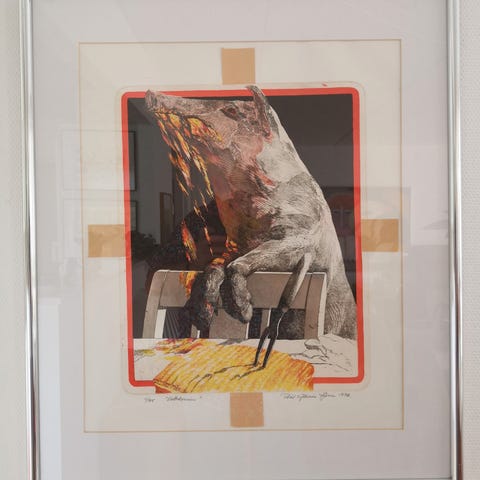 Litografi, Ingstrup 82, motiv: Strandengen, b: 58 h: 45, Signeret og nummeret litografi fra 1982.