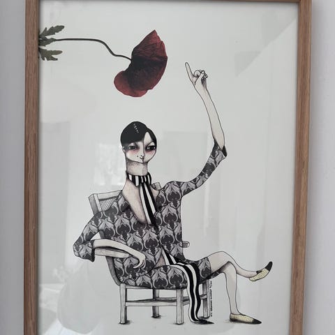 Super fint tryk fra Illum 27/300, Illum, motiv: Svane fra Bob Noon inkl. sort tynd ramme