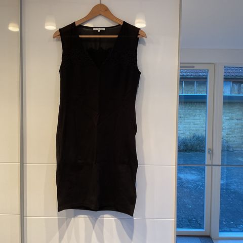 Kjole fra, Glitzy, str. M, Sort, Polyester og elastan, Næsten som ny, Flot sort klassisk kjole med stropper og en lang slids i siden.