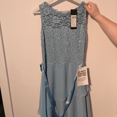 Smuk sommer kjole / selskabs kjole kun brugt én gang ca str L - der er en lang lynlås i ryggen så den er let at komme i - foran og bagpå er der en ca 40 cm lang gå slids - 100 % viscose - under halv pris af nypris. Kjolen er i virkelig pæn stand. Jeg sender gerne billigst muligt - køber betaler portoen.
