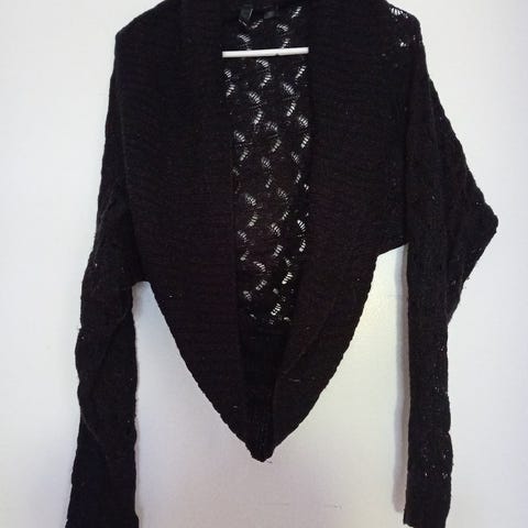 Kan bindes foran og med trekvartærmer - rigtig fin med f.eks. en sort kjole/bukser.