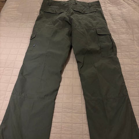 Bukser; str 48, masser af lommer (1 baglomme m. lynlås lukning, 2 skrålommer samt 2 "lårlommer) - kr. 300,00