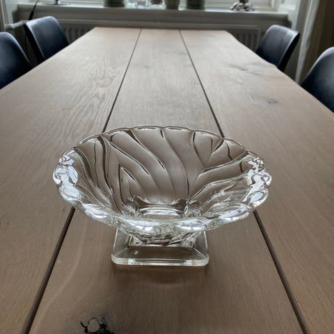 Art Deco Glaskål med mat og glat overflade , Presset glas med plansleben standflade, 80 år gl., Højde 5 cm. Diameter 12 cm.