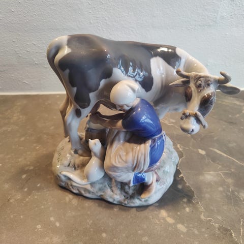 Bing og Grøndahl porcelænsfigur. Malkepigen der hælder mælken over i jungen. Design Axel Locher mode #2181, 1.sortering og i fin stand. Højde 21cm.