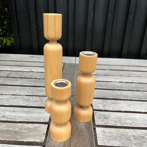 Lysestage, Normann Copenhagen, 3 lysestager i mørkt træ.