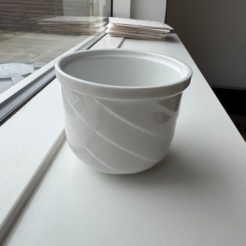 Gammel hvid snoret urtepotte, -, Rigtig flot gammel snoret hvid urtepotte.