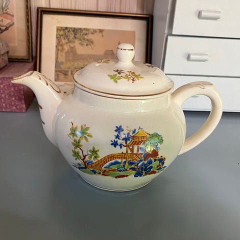 Porcelæn, Te potte med rokoko motiv, Flot te potte fra Angads homewares med rokoko motiv. I flot hel stand. Kr 140. Ca 20,5 cm høj.