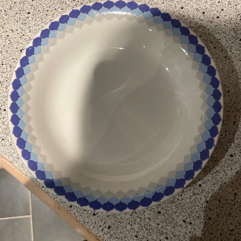 Porcelæn, Ildfast fad, Flammen Feuertest Bavaria, Ildfast fad med rød/hvide/sorte skotsterner fra Bavaria.