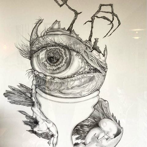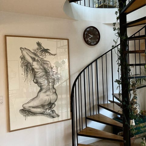 Akvarel, Marie Keis Uhre, b: 140 h: 100, Kæmpe akvarel og tegning “Livets Tapet” af kunstneren Marie Keis Uhre, som også går under kunstner alias Uhre Art.