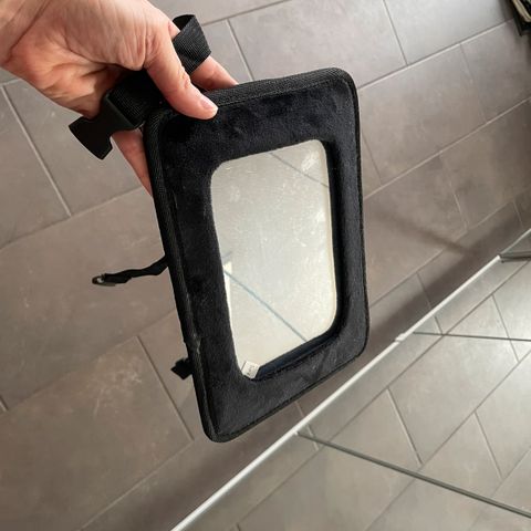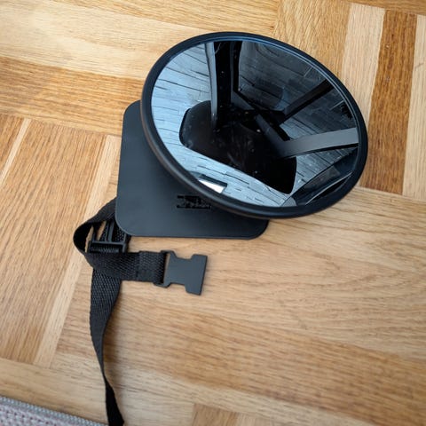 Bee safe baby spejl med lys og remme til fastspænding på nakkestøtte i bilen.