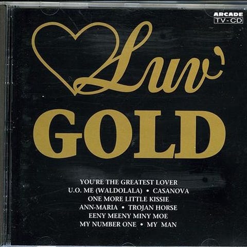 LUV: Gold, pop, Opsamlings-cd fra 1993 i flot stand med indlægshæfte.