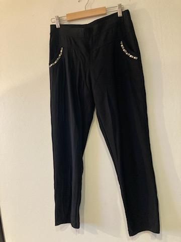 Bukser, Leveté, str. 44, Sort, Næsten som ny, Et par flotte bukser i sort. Habitagtige bukser. Lynlås i lommerne