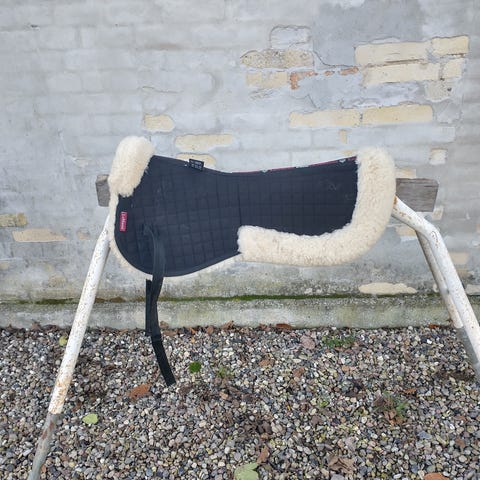 Lammeskindspad, str full, LeMieux Pro Lambskin med lommer og 4 indlæg (2sidder allerede i), ikke brugt ret meget, flot stand, dog er det ene indlæg revnet lidt (kan fikses med tape eller lign). Pris fra ny 1200 kr