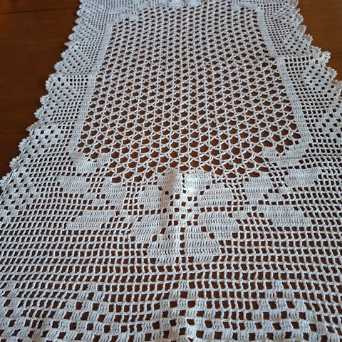 Antik hvid løber med hæklet detaljer, Mål Ca 74 x 35 cm .