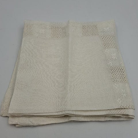 Lyserød hør dug, Vintage, Fin vintage dug i lyserød (mærkes som hør/bomuld blanding) med brunt broderi.