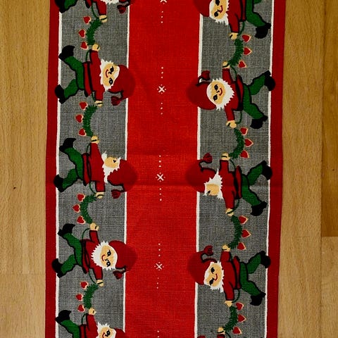 jule dug jule løber kræmmerhus bordskåner osv, 1 lille juledug firkantet 15 kr 4 stk 6 stjernet bordskåner 35 kr 1 kræmmerhus 15 kr 1 lang blå bordløber 25 kr 2 stk røde marie sol til varme ting 20 kr 6 stk røde hækkelde varme ting-bordskåner 20 kr eller alle ting for 100 kr