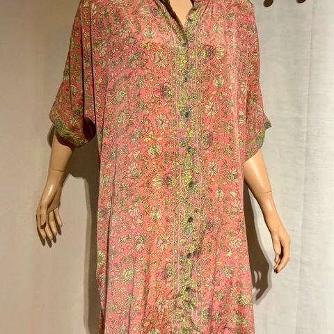 Skjortekjole, ZOEY , str. L, Mørkeblå , 100 % Viscose , Næsten som ny, Lang 100 % viskose skjorte med blomsterprint. Den har en fin kimono inspireret læg i ryggen, som giver en fin detalje. Du kan bruge den åben som en kimono eller lukket som en kjole - du bestemmer.