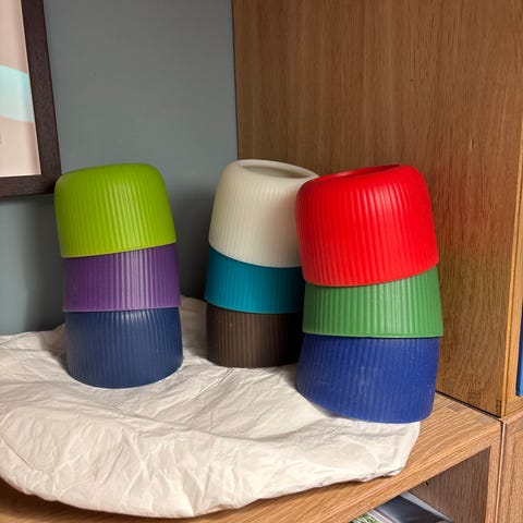 Ekstra gummibånd til Contrast Function opbevaringskrukker. Farverne pink, tyrkis og limegrøn. Jeg har tre af hver farve!