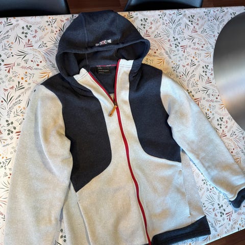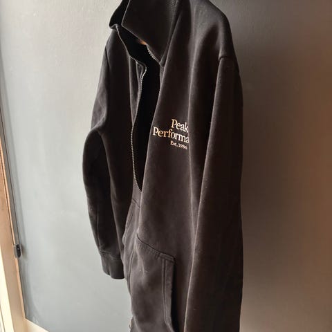 Blandet tøj, Peak Performance , str. XL, Sort , Uld , God men brugt, Super lækker uld cardigan / sweater fra Peak Performance i str XL . Sort med stribet mønster i råhvid, beige, lyseblå og brun.