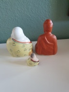Andre samleobjekter, 3 Buddaer, fine - den største er i rødler, Højde 9,5 cm. bredde 6,5 cm. de 2 andre i porcelæn.