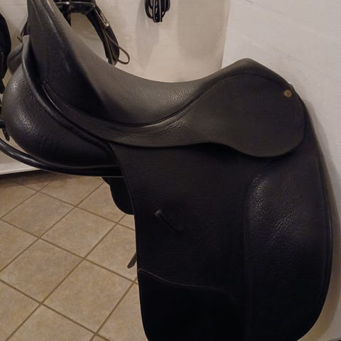 Dressursadel, 16,5”, sort læder, flot og velholdt