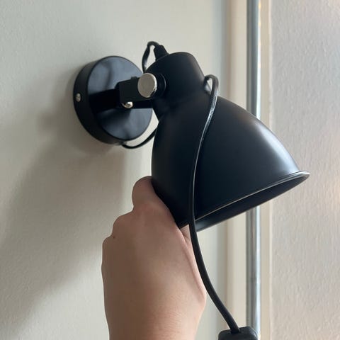 Væglampe, Søstrene Greene, Hvid væglampe. Rids på skærm (se billede) fuld funktionsduelig . Sender ikke. Mål på skærm er Ø14. Lampe arm er 40cm