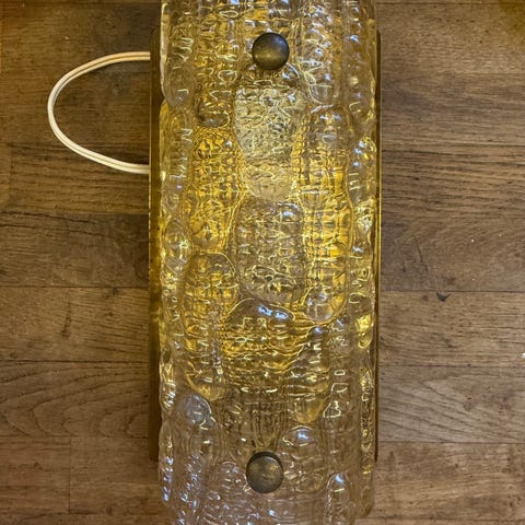 Anden arkitekt, Læselampe, gulvlampe, Carl Fagerlund, Orrefors. Flot vintage lampe fra 1960’erne. Messing. Rund fod af ravfarvet glas.