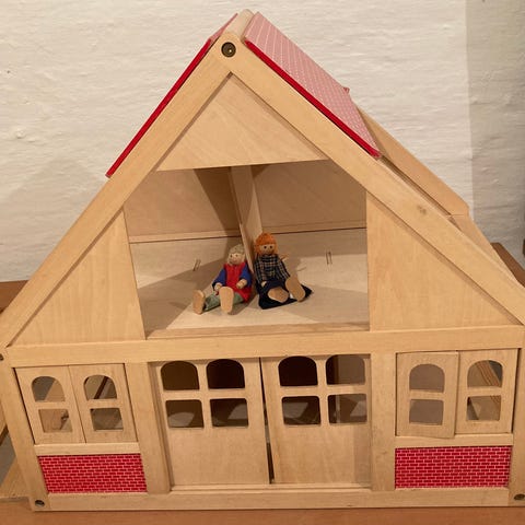 Dukkehus, - fra 1950’erne, Dejligt og indbydende dukkehus med glas i alle vinduer.