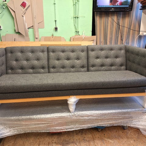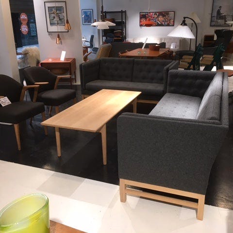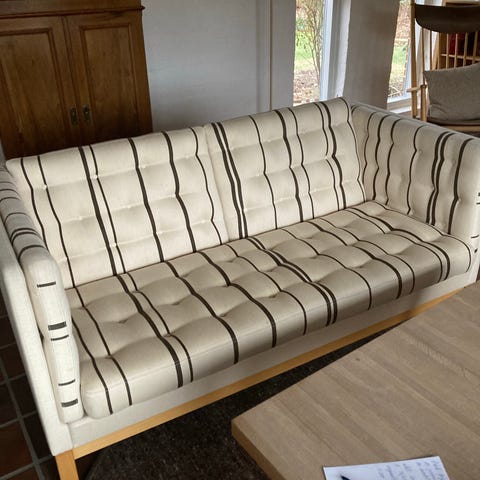 Sofa, stof, 2 pers. , Erik Jørgensen, EJ Toward sofa, ny polstret i Hallingdal og Remix fra Kvadrat. Egetræs ben. Som ny. Kan evt. leveres i brofaste Danmark.