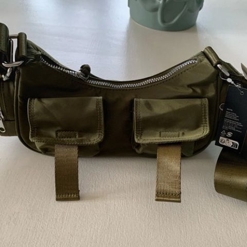 Crossbody, H&M, andet materiale, Flot grøn og guld crossbody taske - kun brugt en gang
