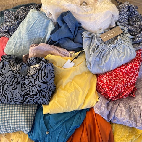 Så står du og leder efter noget til dig selv, familien, veninderne, eller til videresalg, så er der her rigtig meget tøj i forskellige størrelser, (der er mest i str S-M-L), til en fin pris.