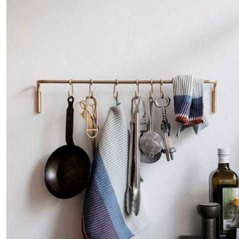 Køkken/badeværelsesstang, Rusta, Køkken/badeværelsesstang med 5 s-kroge. Aldrig brugt. 73.5 lang. 10 cm dyb. Afhentes i Ballerup.