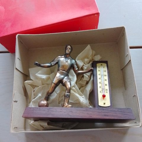Termometer holder i blå plast.