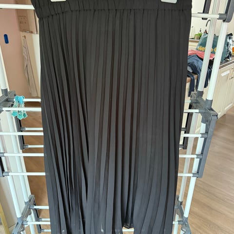 "Plastik-coated" stof med inderkjole, str. 34, Monki, Sort, Polyester, Ubrugt, Voluminøs nederdel der "larmer " lidt når man går. Stor str xs. Ikke brugt. Fra ikkerygerhjem