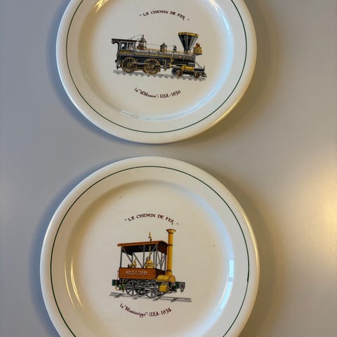 Diameter på tallerken er 19cm, lille fad 24cm og stort fad 29cm. Sælges samlet.