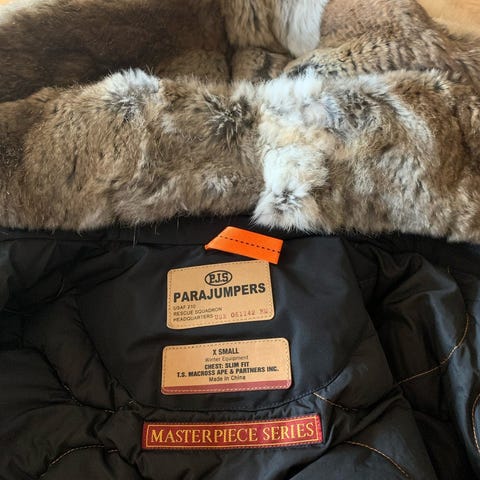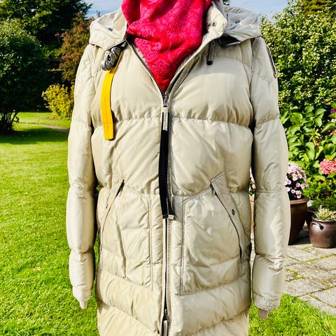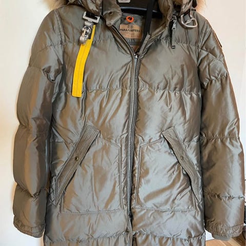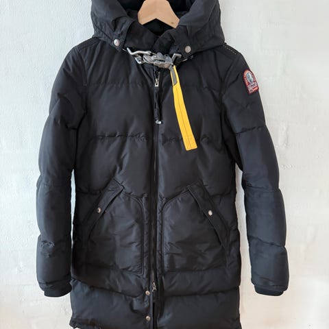 Jakke, str. 42, PARAJUMERS str. XL , Sort , ., God men brugt, Flot sort PARAJUMBERS jakke med dun og ægte pels på kraven i str . XL. Modellen hedder LONG BEAR (se billeder). Har original skilt men kan ikke finde kvittering. Der følger også ekstra trykknapper med.