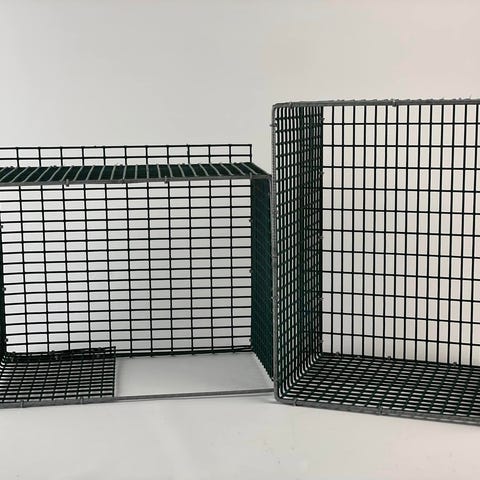 Mink burer, kan bruges som kurve eller hylder, metal. 2 har et låg & 1 uden. Grønlig/turkis farve med rust & patina. Pr. stk. 25 kr.