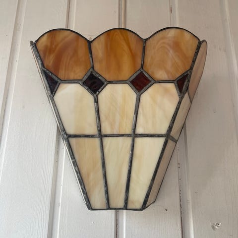 Anden loftslampe, Tiffany, Stor 50/60 cm bred spisebordslampe fra tiffany i flotte farver sælges. Da ophænget mangler , sælges den billigt . Den fejler ikke noget , ingen skader. Røgfri. Afhentes på adressen