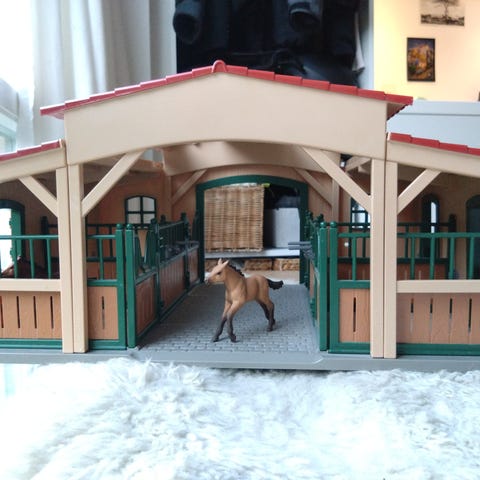 Stald, Hestestald, Hjemmelavet, Har været brugt til schleich heste og passer perfekt til det