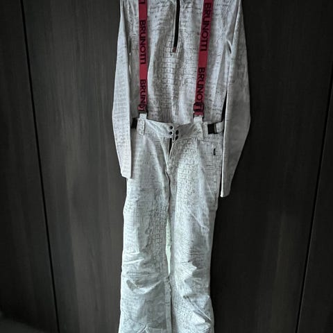 Skitøj, Brunotti, str. Medium, Blå/råhvid blomstret, Ubrugt, Åndbar, vindtæt, vandtæt feminin skidragt. God pasform, meget komfortabel og god bevægelsesfrihed. Praktiske lommer og lynlåse til at åbne ben for skistøvler. Indvendig snefang og indvendige handsker. Vandtætte lynlåse og høj hals.