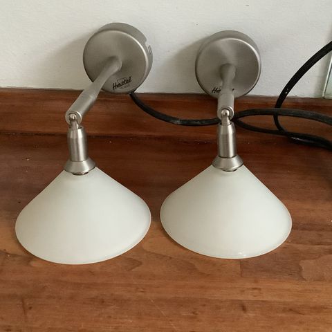 Væglampe, Herstal, 2stk halogen væglamper. Den lilla har diameter på ca 8cm, den hvide ca.10cm. Sælges samlet. Sendes ikke. Betales kontant eller via MobilePay.