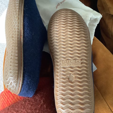 Hjemmesko, str. 35, Shu’s.dk, unisex, Lille str 36, mere en 35, ren uld og naturskind. Købt for små - helt nye og i original bomuldspose