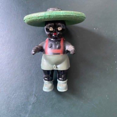 Legetøj, Retro pivfigur, Charmerende retro pivfigur af lille pige med bamse, længde ca. 14,5 cm. - selve piverten virker ikke mere.